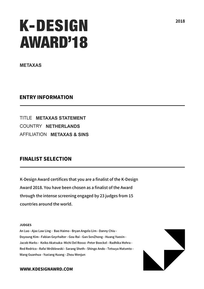 I'm please to announce that the Metaxas & Sins "Statement" is a finalist of the Kdesignawards...